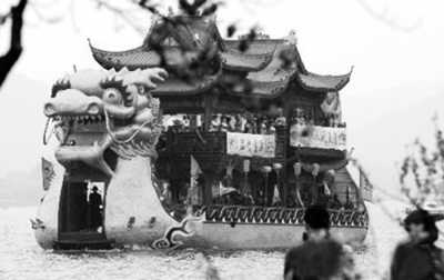 其实,早在1986年,楼外楼饭店就推出了一艘餐饮船,一直停靠在楼外楼门前的码头。据楼外楼副总经理蒋红介绍,饭店去年投资近600万元又推出了一艘“楼外楼号”画舫,船体金碧辉煌,可供50人游湖、20人用餐。