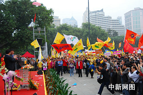 中新网广州2月23日电(记者 莫非 通讯员 月明 梁婕 钟山)广东旅游业界2009年大利好浮出水面,国民旅游休闲计划23日开始正式实施。广东省各大旅业集团、旅行社纷纷积极响应,召集了来自珠三角地区4000多名游客聚集在广州中山纪念堂前参加启动仪式。