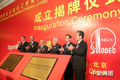 中新网泉州3月30日电(吴宏 郑伟伟 林永传)三十日,由中国石化、福建省、埃克森美孚及沙特阿美石油联合投资约五十亿美元、中国第一个炼油、化工及成品油营销全面一体化项目,在北京人民大会堂举行企业成立揭牌仪式。设于福建省的两个合资企业“福建联合石油化工有限公司”、“中石化森美(福建)石油有限公司”正式成立。