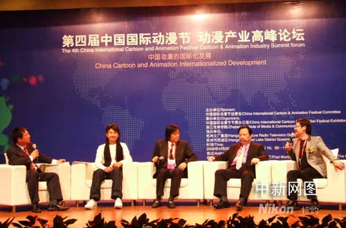 “中国动漫产业缺的。不是写故事的人才,也不缺绘画人才,缺的是创意和营销方面的人才。就是还没有真正与国际接轨。”香港著名漫画家黄玉郎先生在高峰论坛上发表对中国动漫产业的看法,黄玉郎认为,香港动漫相比之下早成熟于大陆动漫得益于市场竞争条件下形成的营销意识,“所以我从单纯的画漫画转型到既画漫画又做漫画企业,中国的动漫画要与国际接轨,要有经营意识。”