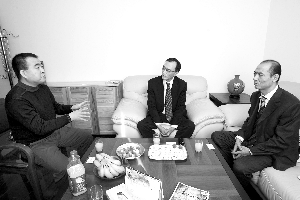 国美电器代理主席陈晓(中)带队回访家住望京的消费者朴先生。记者 吴江 摄