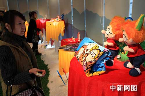中新网上海12月26日电 (记者 许晓青)12月26日,由五花八门的卡通公仔“装扮”一新的上海动漫衍生产业园,在此间宝山区大场镇揭幕。作为当地应对国际金融危机、扩大内需的新启动项目之一,园区所蕴涵的时尚科技元素,吸引了众多年轻卡通迷到场。