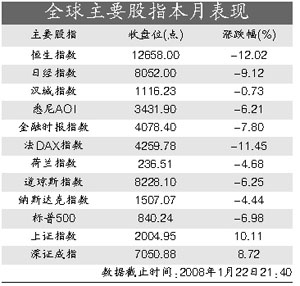 2009年的第一个交易日,道琼斯指数曾大涨258点,报收于9034.69点,然而,这也成为截至目前的最高点。在随后的近三周中,道琼斯指数不断下跌,本周二更是暴跌4%,收于7949点。即便是周三道指反弹3.51%,今年以来,道指最大跌幅也已高达9%,纳斯达克指数累计最大跌幅高达8.7%。