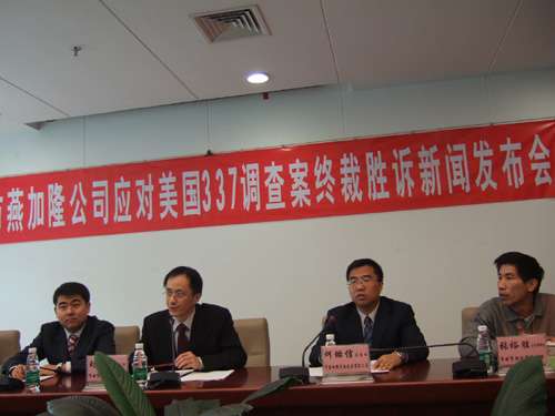 在2005年7月,美国Unilin Beheer以及荷兰Unilin、爱尔兰地板工业公司依据美国“337条款”,联合向ITC提起申诉,指控包括燕加隆实业发展公司在内的三十二家国外企业(其中中国企业十七家)的地板锁扣产品构成专利侵权,要求禁止这些企业的产品进入美国市场。虽然诉讼费用高昂,但燕加隆公司在国家商务部有关司局和深圳市世贸组织事务中心的支持下应诉。