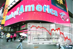 去年,美国银行的股价累计下跌66%。公司CEO刘易斯今年1月6日称,该行2008年全年业绩可能低于之前预期,自那以来,美国银行的股价再跌30%。14日纽约盘后交易中,该股重挫近6%,低见9.50美元,创17年来新低,也是自1992年来首度跌破10美元。