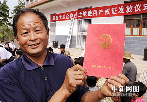 中新网枣庄9月15日电(通讯员 李宗宪)山东省枣庄市山亭区徐庄镇的280名农民,于9月15日领到了由山亭区人民政府发放的农村土地使用产权证。据悉,由地方政府向农民发放农村土地使用产权证在全国尚属首次。