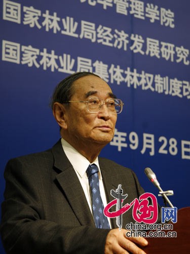 中新网9月28日电 全国政协常委、北京大学光华管理学院名誉院长厉以宁教授在作“关于集体林权制度改革思考”的报告时表示,林权制度改革不能单纯地仿照农业承包制,必须走超越农业承包制之路。