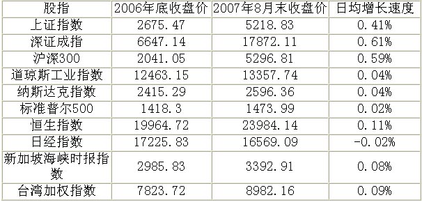 表2 中国股市暴涨期内与主要股指日均增长速度比较(2006.12.31~2007.8.31)