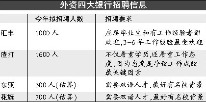 招聘人数:4大外资行扩招数千人