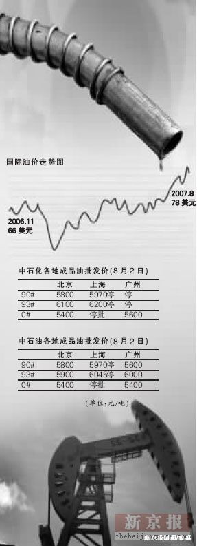 “批发价上调是正常的市场供求反映,资源紧张是导致价格上涨的原因。”中石化一位内部人士向记者透露,国际油价持续走高,中石油和中石化自五六月份开始亏损,炼油厂的亏损也在不断加大。很多地方的小炼厂因为成本过高,不少小炼油厂都相继停产,这在一定程度上也造成资源紧张。