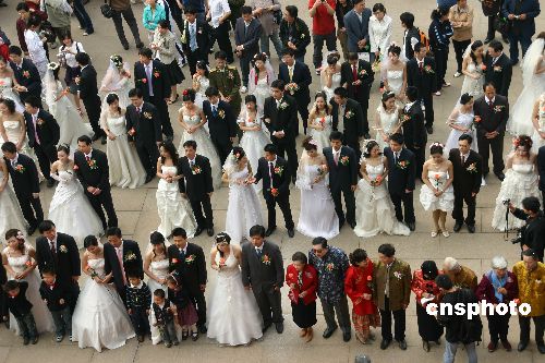 图:山东潍坊举办全国最大规模的古典集体婚礼