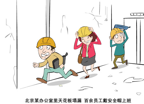 新闻浮世绘:办公室天花板塌漏 员工带安全帽上班