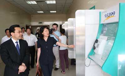 中新网5月17日电 日前,中国农业银行杨明生行长率总行会计部、个人业务部负责人以及北京分行三位行长和有关部门负责人来到朝阳支行水碓西里分理处,开始了对北京地区农行网点如何解决排队现象和网点建设的调研。在这个不足300平米的旧网点里,杨明生从网点外观到内部设施,从对公业务到个人业务都进行了详细询问。“我之所以把这里当作第一站,是因为著名歌唱家李谷一今年两会期间向我反映说在这办业务排队等候的时间比较长,而且营业环境较小,设施陈旧,现在看来营业环境的确差了点……”他这样说。