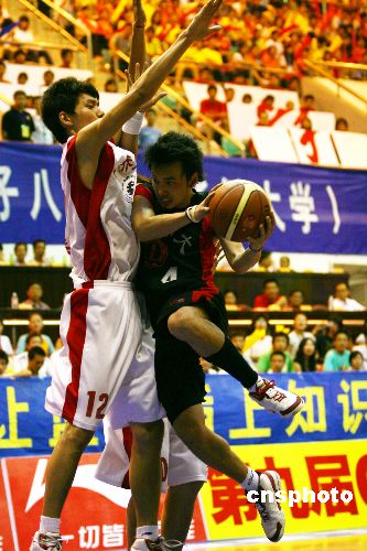 5月18日下午,泉州侨乡体育馆,第九届CUBA篮球联赛男子八强赛华侨大学主场对阵湖南师范大学,最终华侨大学以91:60 再次轻松取胜。中新社发 王黎 摄