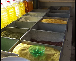 在李大梅的进货记录上记者看到,从今年年初,大豆、玉米、面粉都长了不少,大豆油涨得最厉害,进货价格高了,李大梅只能跟着水涨船高,可是这样一来,生意就清淡了,现在一天也见不到一个批发商,只有周围的居民零零散散来买点米和面。