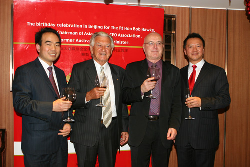 中新网12月10日电 12月9日晚,著名国际经济组织亚太总裁协会在典雅的北京中奥马哥孛罗大酒店举办了一场别开生面的生日庆典,庆祝享有“APEC之父”美誉的澳大利亚前总理鲍勃•霍克先生的生日。