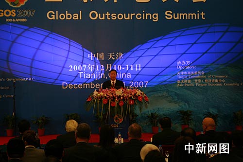 中新网12月11日电 12月11日,首届全球外包大会在天津经济技术开发区隆重举办。国家商务部、信息产业部、科技部等有关部委领导,澳大利亚前总理、亚太总裁协会全球主席鲍勃.霍克、前法国总统参谋长克里斯汀.加诺上将.美国共和党亚裔总党部执行主席吴异军,部分世界五百强企业、服务外包领军企业,有关国际经济机构代表以及海内外相关发包、接包企业代表共500余人出席大会。天津市委副书记、市长戴相龙出席开幕式并致辞,天津市委常委、常务副市长黄兴国,天津市委常委、滨海新区管委会主任苟利军,天津市政府秘书长何荣林,亚太总裁协会全球执行主席兼国际外包中心全球董事郑雄伟出席开幕式。