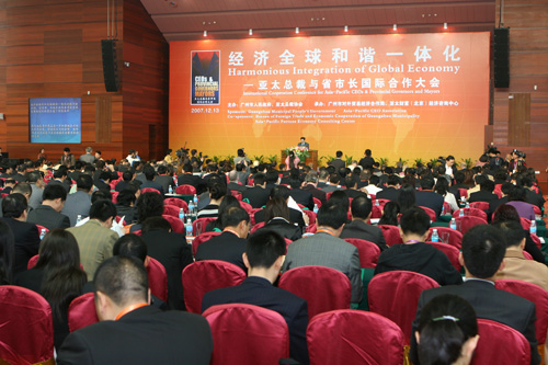 中新网12月23日电 2007年12月13日,由亚太总裁协会、广州市人民政府主办,广州市外经贸局和亚太财富(北京)经济咨询中心承办的“第三届亚太总裁与省市长国际合作大会”在广州白云国际会议中心召开,中共广东省委常委、广州市委书记朱小丹,广州市委副书记、市长张广宁出席了大会。
