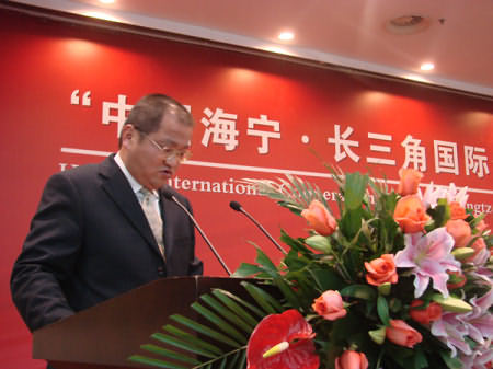 中共嘉兴市委常委、海宁市委书记俞志宏在授牌仪式上表示,热切期望亚太总裁协会把海宁的特色和优势介绍给广大会员企业,把亚太地区世界500强企业的优质项目推介给海宁,在平等互利、共同发展的基础上建立更加深入广泛的合作关系。“目前,海宁市已同全球160多个国家和地区建立了经贸合作关系,有近40个国家和地区的企业和个人前来海宁投资兴业,累计批准外商投资企业700多家,总投资36亿美元,其中来自亚太地区的投资占90%以上,世界500强的多家企业也已在海宁落户。我们将以长三角国际合作基地建立为契机,主动加强与亚太总裁协会特别是世界500强企业的联系,深化友谊,增进了解,扩大交流,并积极为彼此之间合作提供全方位的优质高效服务。”
