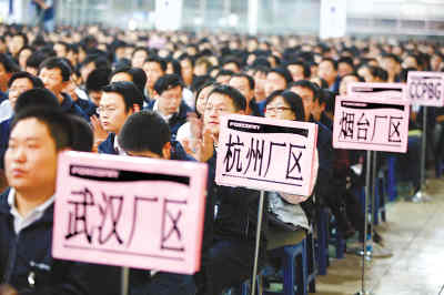 一家公司来自全国不同厂区的员工正在听专家讲解《劳动合同法》。江 成摄