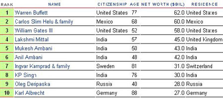 墨西哥电信大亨卡洛斯·斯利姆·埃卢(Carlos Slim Helu)个人资产达600亿美元,位居全球第二位,而微软主席比尔盖茨虽然在过去13年里一直蝉联首富桂冠,但其资产因微软股价下跌而缩水为580亿美元仅屈居第三。