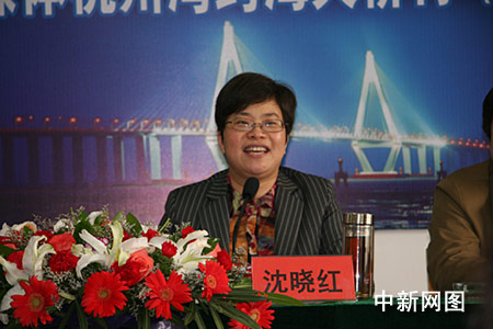 中新网嘉兴4月17日电 全国网络媒体杭州湾跨海大桥行17日来到嘉兴海盐,海盐杭州湾大桥新区相关负责人就开发区相关情况作介绍。