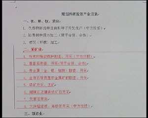 2007年,在新修订的“外商投资产业指导目录”中,金、银等贵金属的勘查和开采,已经被列入限制外商投资的产业目录中。