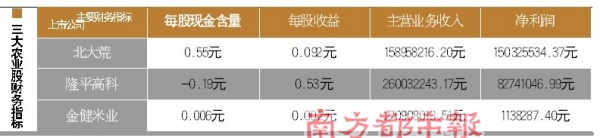 和朱卫华持相同观点的不在少数,有基金公司投资总监表示,至少看不到农业股的利润点(支撑)。农业股一季报的确不让人乐观。如北大荒业绩仅0.09元/股,远远低于市场预期。隆平高科盈利是靠转让股权,而主营利润却是亏损。金健米业的一季度每股收益仅有2厘钱,而5月9日收盘价已经为12.91元。