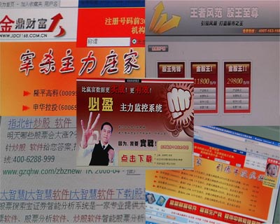 图片02:记者在网上键入“炒股软件”进行搜索,发现全国各地像这样卖炒股软件的公司有成千上百家,这些公司要么以科技公司注册,要么以网络公司注册。 图片来源:新华网