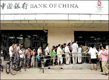 市民王先生说,前天,他在报纸上看到中国人民银行将于昨天发行10元奥运纪念钞,因为想到中国银行是奥运会合作伙伴,昨天一大早,他就赶到中行知春路支行等候购买奥运纪念钞。当王先生到达银行门口时,近300名市民早已在此排起长队。