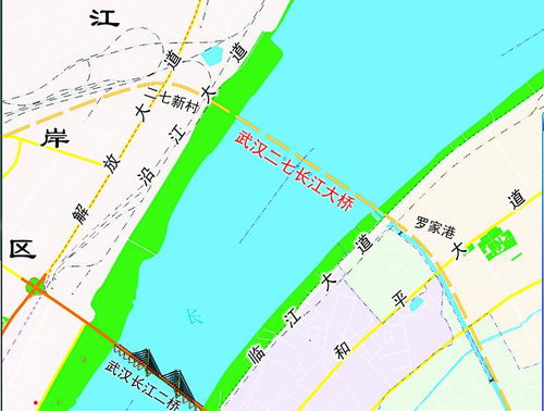 根据国家发改委批文,按照国务院批准的《武汉市城市总体规划(1996年至2020年)》以及将武汉城市圈建设成“全国资源节约型和环境友好型社会建设综合配套改革试验区”的要求,为尽快打通武汉市二环路,完善武汉市主城区道路网骨架,进一步提高过江通道能力,同意建设武汉市二七长江大桥项目。该桥桥址位于长江二桥与天兴洲公铁两用长江大桥之间,距长江二桥3.2公里。路线沿京广铁路下行线,穿汉口解放大道及江岸货场铁路疏解区,过长江后经武昌罗家港泵站,沿罗家港排水明渠至和平大道。