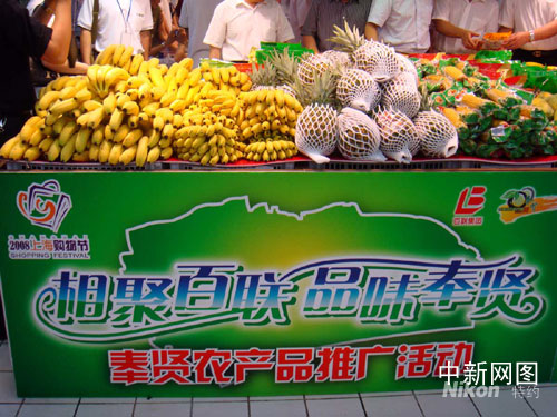 为了让广大上海市民尽快吃到这些新鲜健康的特色农副产品,与奉贤人一起分享他们的农业科技成果。奉献区政府和百联集团在去年合作的基础上,籍08年上海购物节之际,举办了这次展销周活动,这次展销涉及的产品有蜂蜜、菌菇、无公害蔬菜、食用菌胶囊、南北货、调味品、乳制品、家禽、水果、海产品等100多个。在展销柜台前,各相关企业专门配备了专业的产品讲解员向消费者介绍相关产品知识,食用、保存方法,帮顾客挑选适合的产品,同时很多企业为了方便顾客还准备了大量宣传资料,上海丰科为让广大市民更直接明了地品尝丰科蟹味菇和白玉菇,别出心裁的准备了一份食谱,食材简单,图文并茂,顾客在购买菌菇的同时随手捎上一份食谱,回到家中简单操作一下即可品尝美味,既方便又贴心。玉穗葡萄更是募集会员、采摘葡萄自治酒品的企业文化的宣传品带到的活动现场。