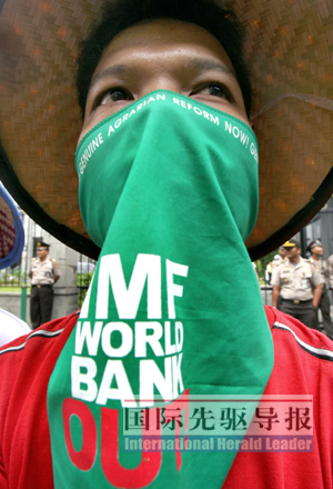 东南亚国家普遍将IMF视为美国攫取他国利益的工具。图为2007年1月23日,印尼学生聚集在雅加达的央行门前抗议IMF总裁罗德里戈·拉托到访。法新社
