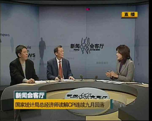 李小萌:你好观众朋友,欢迎来到正在直播的《新闻会客厅》。今天上午十点,国家统计局公布了2009年1月居民消费价格指数,也就是CPI指数是1.0%,这也创下了2006年8月至今最新的一个低点。今天我们就请到国家统计局总经济师姚景源先生来和我们共同通过理解CPI,来理解我们当下的生活,以及未来的生活会发生什么样的变化,欢迎您姚总,同时在场外我们也请到两位经济领域的专业人士会提出他们的观点,带出他们的声音。 而坐在姚总旁边的是三联生活周刊的副总编辑李鸿谷先生,今天请您来,我知道您对经济其实涉猎也很多,但是你今天的任务是最普通人的角度,最普通人的观点来观察和提问好吗?