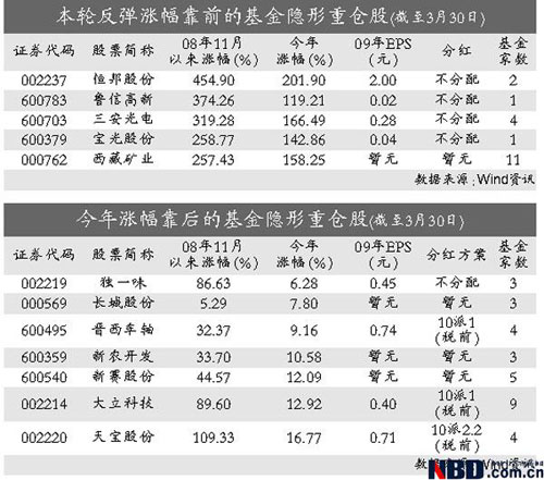昨日,基金2008年年报的披露正式落幕,基金去年年底时的持股明细悉数浮出水面,被基金排除在十大重仓股之外的 “非主流”品种一一曝光,这些基金隐形重仓股中不乏本轮行情中的大牛股,比如恒邦股份、鲁信高新等。