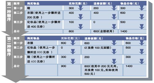 许多顾客为了用掉100元返券,通常需要加钱来购买一样本来不在计划中的商品。或者,为了凑够优惠消费金额,而购买一件小玩意。但是,通常这些你不注意的小玩意就是利润的大头。例如,一件衣服199元,你可能觉得为了1元而与优惠“失之交臂”,情急之下买了一双29元的袜子。但如果商场改用直接打折的话,很可能张小姐买了裤子后就不会再要袜子了。