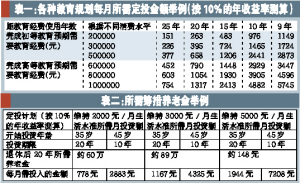 根据泰达荷银基金公司提供的数据显示,如果你在孩子出生时开始积累子女完成高等教育所需的60万元经费,那么,以10%的复利计算,投资期限15年,你每月只需投资1448元即可完成子女教育经费规划。需要提醒投资者的是,子女教育费用的积攒越早越好,筹措同样金额的教育经费,越早开始,你的经济压力就越小。