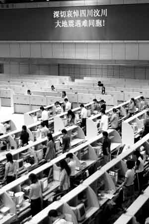 昨天一早,一位“梦不见了”的投资者最先在网上发帖。这篇题为“全国哀悼日(19日至21日)我们锁仓为汶川地震遇难同胞致哀”的帖子这样写道:“5月19日至21日是全国哀悼日,让我们股民也用自己的行动来表达对汶川地震中遇难同胞的深切哀悼,让我们共同锁仓三天!为灾区同胞献上自己的爱心,为灾区同胞祈福!”黑色加粗的字体、简单朴素的语言,却道出了大批投资者的心声。在19日至21日的全国哀悼日中,投资者的眼中已没有股市。