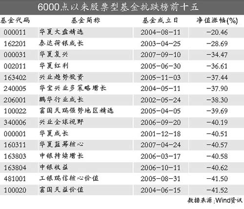从6100多点以来,上证指数的跌幅已超过了65%。而华夏红利等4只基金的净值损失不到其一半。华夏大盘的净值损失只有20%左右。兴业趋势、华宝多策略增长等基金净值也损失了不到40%。相反,部分基金在熊市的跌幅甚至超过了60%。
