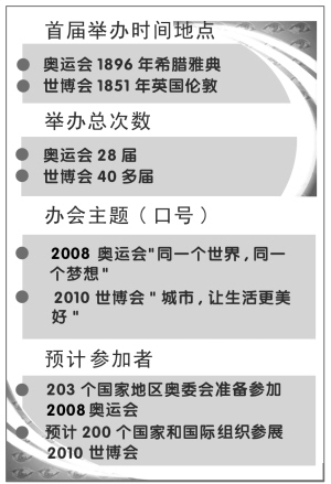 沪:北京是我国的政治、文化和对外交往中心,上海要承担金融、贸易、航运、经济“四个中心”的国家战略,而奥运会被誉为“人类精神的展示”,世博会被赋予传播人类智慧的功能。“双城双会”是难得景观,让人想起一句词,“金风玉露一相逢,便胜却人间无数”。