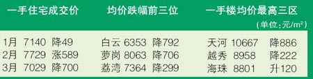 有关人士表示,广州一手住宅房价3月跳水,一方面是广州出台力控房价“广七条”已经初见成效。而广州合富辉煌首席分析师黎文江则说,一手住宅与股市、基金近期看好有关。