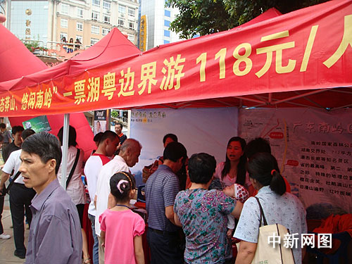 中新网韶关7月4日电(冯昶 李凌 韩秋阳)今日上午,由广东韶关南岭国家森林公园和湖南郴州莽山国家森林公园共同举办的“悠闲南岭、生态莽山粤湘一票通”启动仪式,在韶关市风度名城广场举行。