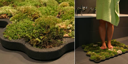 4:苔藓地毯:先暂且不讨论光脚踩草坪是否有利于人的血液循环这一问题,这一款苔藓地毯很大程度上解决了那些懒得去公园散步人们的难题。此苔藓使用抗腐烂材质的泡沫板制成,只需浴室的湿度就可以使其成活。让你在家轻松享受茵茵绿意。