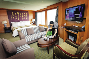 据了解,游船上共有2套总统套房、3套豪华套房、35套行政套房和160间标准房。房间均提供24小时不间断热水供应,卫生间采用国际上最先进的整体式卫浴,壁挂液晶电视可24小时收看国内、国际各个频道,每个房间都配有保险箱、小冰箱、内线电话,能享受中央空调。