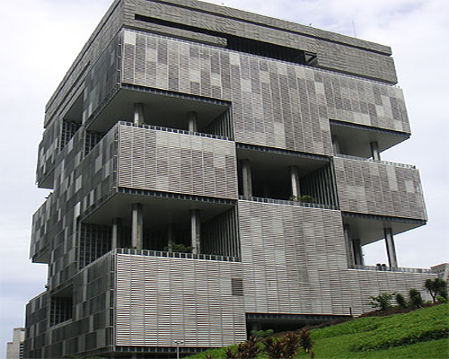 这座融合了教养所和半成品拼装玩具特色的奇异建筑在市中心占据了有利的位置,而建筑外表的横木板更是让人产生建筑物已破裂的错觉。