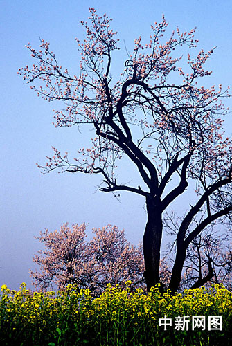 中新网新密3月18日电(记者 赵晖 通讯员 项阳)“忽如一夜春风来,千树万树杏花开。”18日,记者在河南新密神仙洞景区看到,野生杏树由东向西递次竞相吐蕊开花,漫山遍野,如云似霞,成为当地一道奇观。