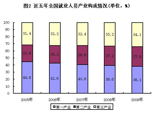 年末全国就业人员77995万人,比上年末增加515万人。其中,第一产业就业人员29708万人,占全国就业人员的38.1%;第二产业21684万人,占27.8%;第三产业26603万人,占34.1%。年末城镇就业人员31120万人,比上年末净增加910万人。