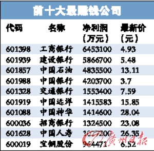 前十大公司半年赚2911亿。 图片来源:广州日报