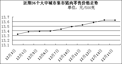中新网12月18日电 国家发改委网站消息称,据国家发展改革委价格监测中心监测,上周(12.10-12.14,下同)全国36个大中城市集市猪肉(精瘦肉)平均零售价格每500克为13.57元,比前一周(12.3-12.7,下同)上涨1.34%。