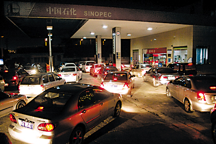 图:涨价谣言疯传 油站夜排长龙 图片来源:羊城晚报